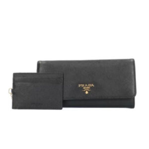 プラダの象徴であるトライアングルロゴをあしらった長財布も人気。収納力が高く、カードやレシートをしっかり整理したい方におすすめです。